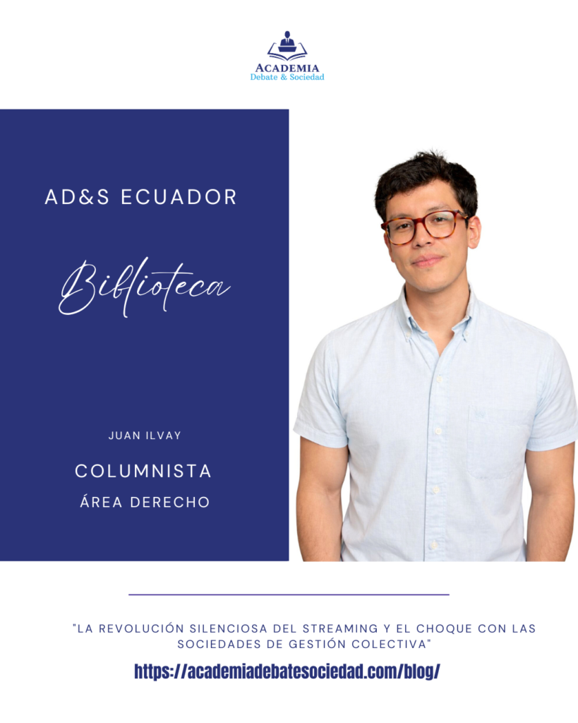Juan Ignacio Ilvay Velásquez es abogado por la Pontificia Universidad Católica del Ecuador y posgradista del Consejo Latinoamericano de Ciencias Sociales (CLACSO) y de la Universidad de Manizales, con experiencia en investigación jurídica y acompañamiento en derechos humanos. Su trabajo se centra en el derecho de autor, la propiedad intelectual y los derechos digitales; además, ha realizado análisis normativo, ha participado en procesos civiles y en proyectos comunitarios, y ha desarrollado investigación sobre gestión colectiva y los retos del entorno digital. Su práctica se caracteriza por una mirada crítica, rigurosa y orientada a la defensa de los derechos de autor y de los derechos humanos.